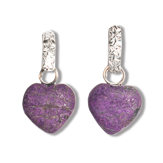Brinco Coração Purpurita Pedra Natural Tarraxa Prata 950