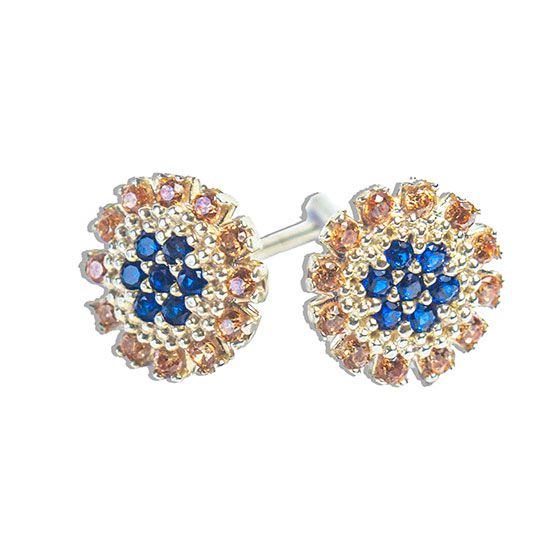 Elegância em Flor: Par de Brincos de Flor de Zircônia Azul em Prata 925