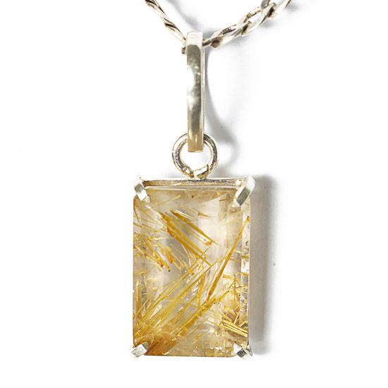 Pingente Baguete Facetado Especial Pedra Cristal com Inclusão Rutilo Ouro Extra Montagem na garra com perinha em Prata 950 para passar o cordão Pedra Genuina com origem garimpo lapidação e montagem manual