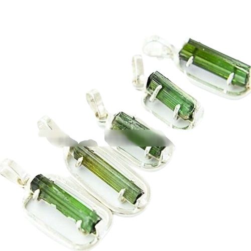 Pingente TURMALINA VERDE Pedra Bruto montado com Prata 950 a montagem é feita envolto da peça com prata de lei suave não machuca quando estiver usando.