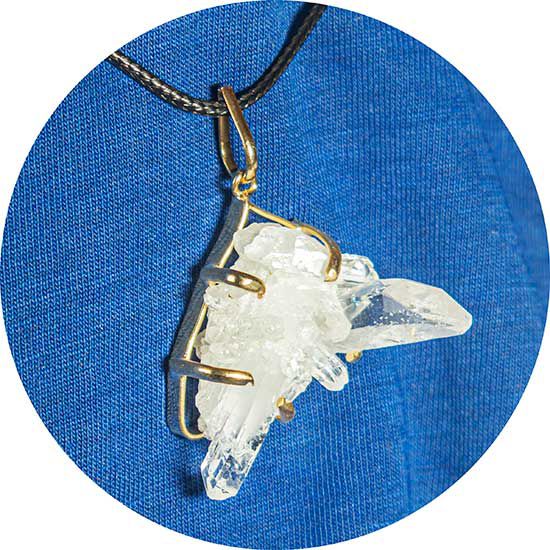 Este colar é um tributo à pureza e à clareza mental que o cristal pode oferecer. Esta joia é uma expressão única da beleza natural e da autenticidade da Drusa de Cristal Bruta.