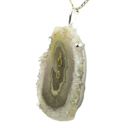 Pingente Flor de Ametista Pedra Natural Garra Prateado, Pingente Chapa de Estalactite com acabamento Liso montagem na garra com perinha para passar o cordão Pedra Genuina com origem garimpo lapidação e montagem manual.