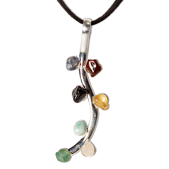 Colar Galho com Pedras Mistas 60mm Natural Banho Prateado, Lapidação no vibrador, mineral de garimpo pedra natural Montagem Pedra Colada na Armação em formato de galho com banho Prateado.