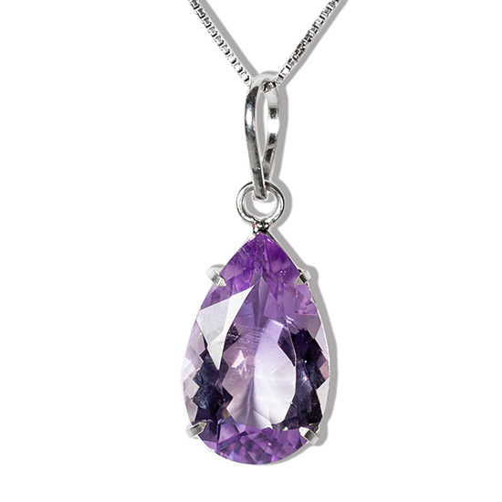 Colar Gema Gota Ametista Facetado 17mm Montagem na Garra de Prata 950, uma combinação encantadora de cor e brilho para enriquecer o seu visual. Adquira já!