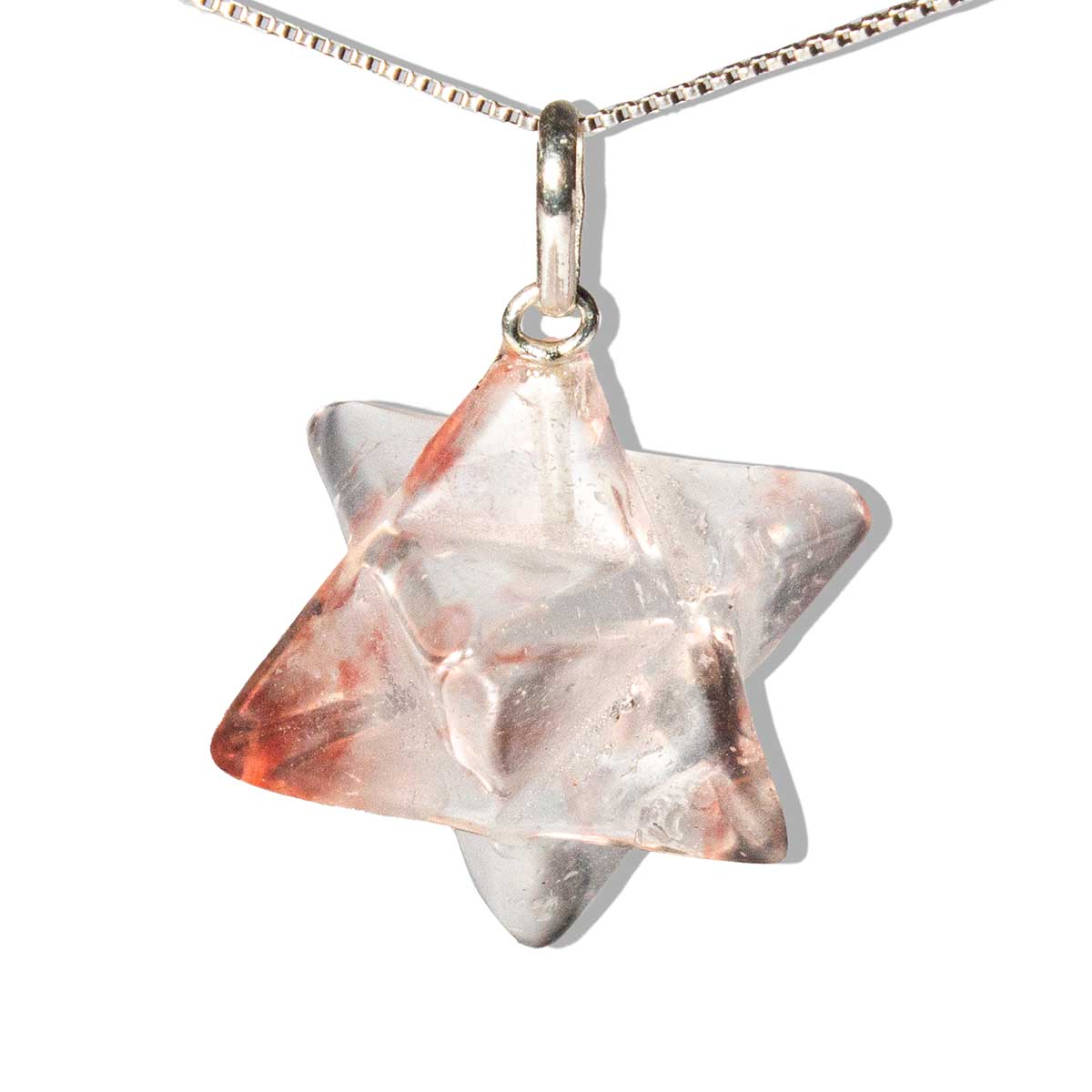 Pingente Merkabah Quartzo Cherry natural, pedra com exelente lapidação em formato estrela merkabah. Montagem no pino dourado.
