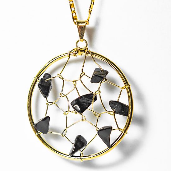 Pingente Filtro dos Sonhos com Pedra de Turmalina Preta Banhado a Dourado