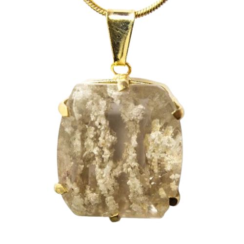 Pingente Pedra Cristal Lodolita Baguette na Garra Dourada, Gema Cristal Inclusão Lodolita Baguette Especial Pedra Montagem na garra dourado com perinha para passar o cordão Pedra Genuina com origem garimpo lapidação e montagem manual