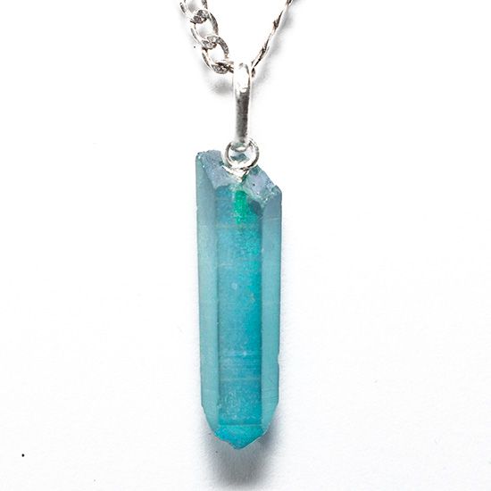 Pingente Ponta Cristal Aura Aqua bruto natural de garimpo sem lapidação com montagem em prata 950, peça muito delicada. Já vai montado.