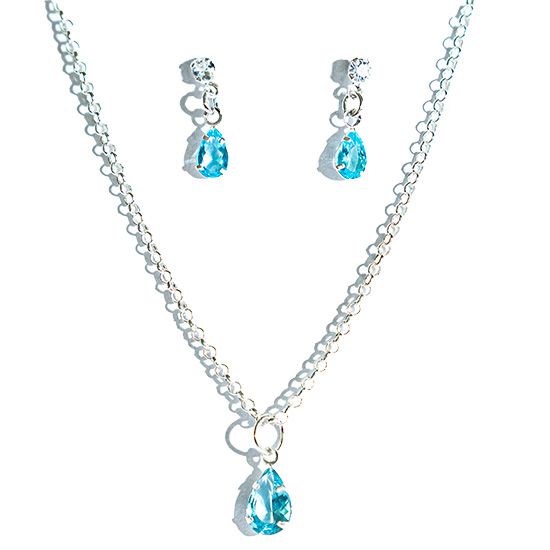 Conjunto de brinco e colar com zircônia azul na prata 925, perfeito para dar um toque de elegância e sofisticação ao seu look. Adquira já!