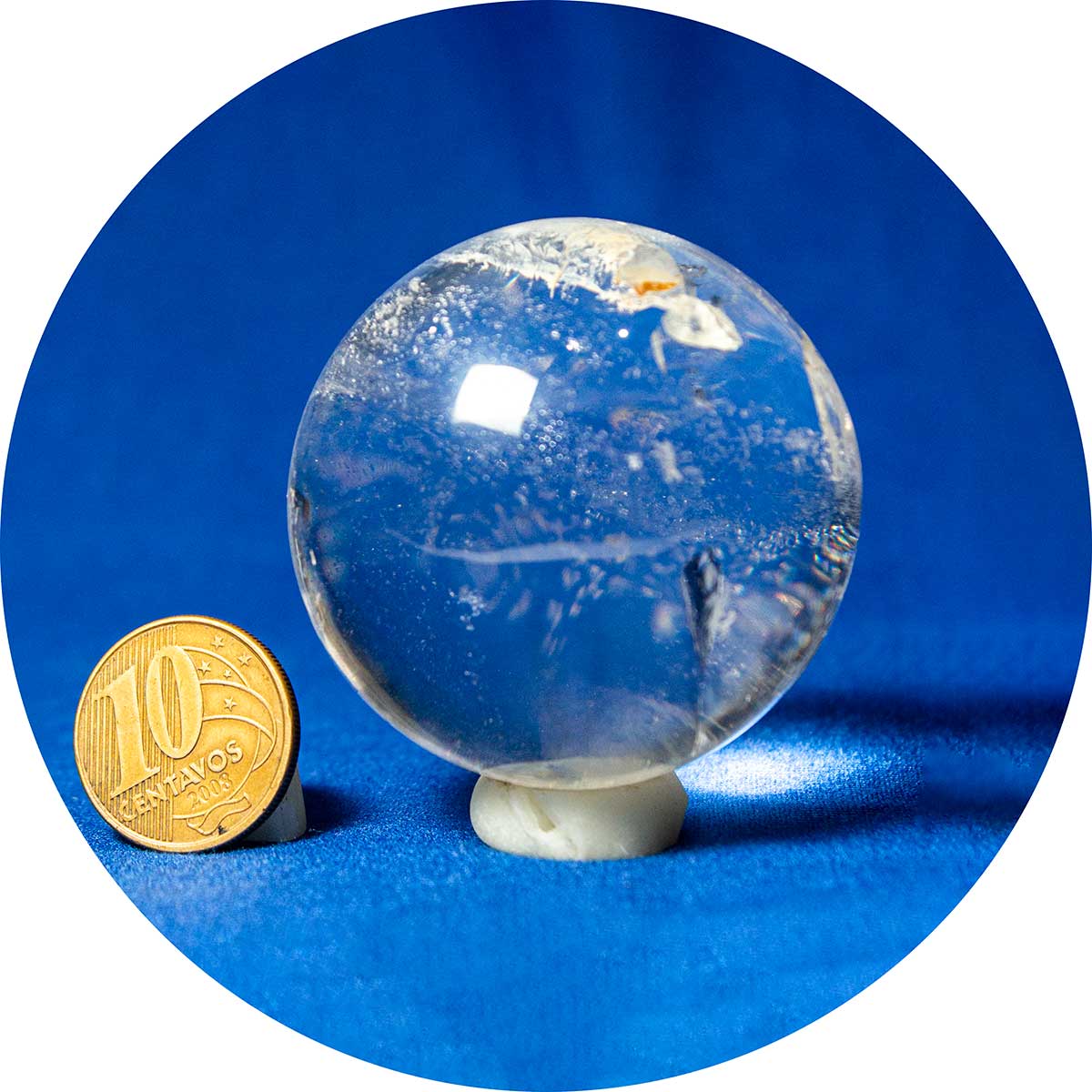 Transforme o ambiente com a magia do Quartzo Cristal. Uma pequena esfera que guarda o mistério e a beleza da natureza, refletindo luz e energia, perfeita para decoração ou práticas espirituais.