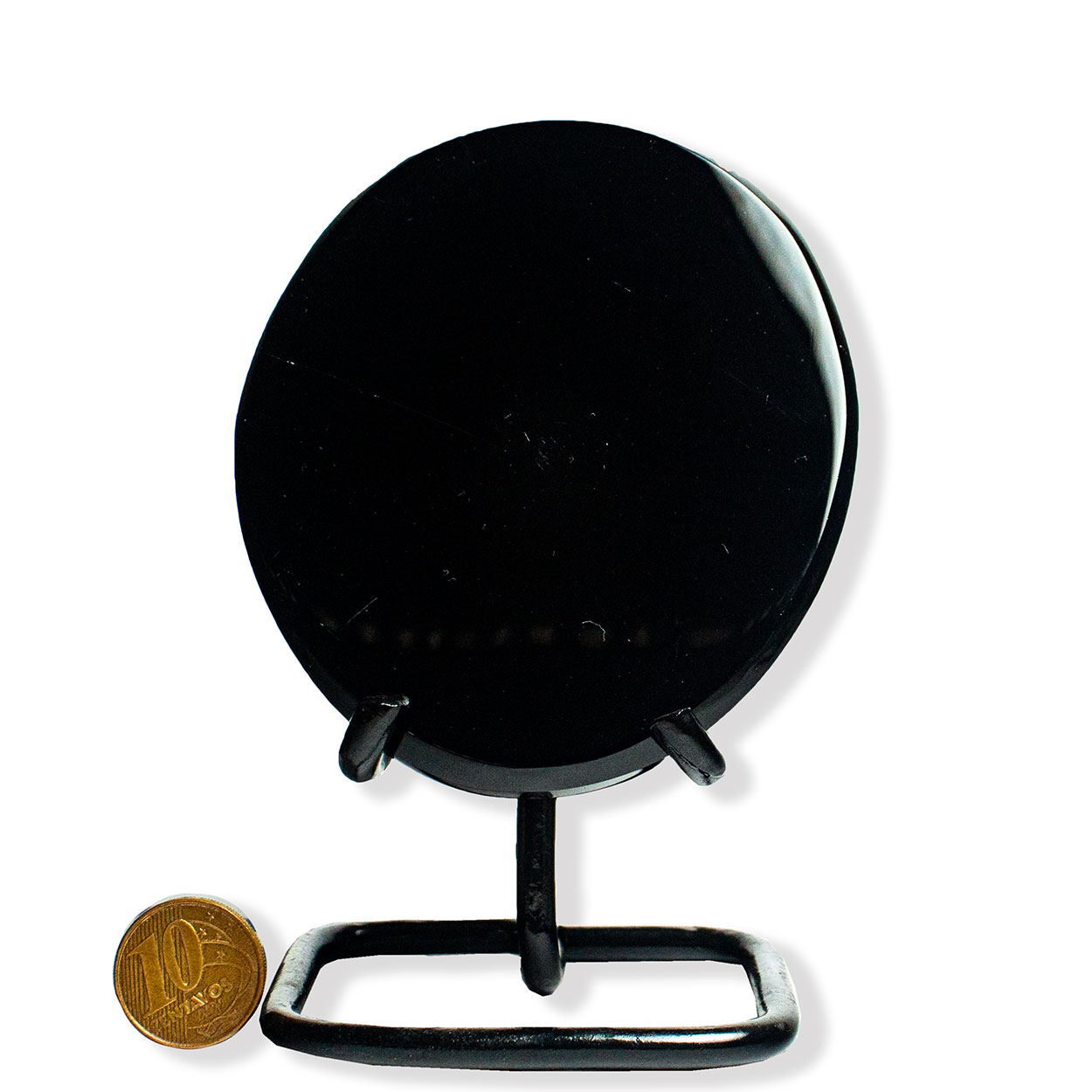 O Espelho Negro de Obsidiana em formato oval é uma peça elegante e versátil, ideal para decoração, meditação e práticas de introspecção.