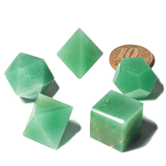 Kit solido de platão formas geometricas lapidado em pedra natural de garimpo com boa qualidade, Tetraedro, Hexaedro, Octaedro, Dodecaedro, Icosaedro ideal para coleção, estudo, presente, etc. Solidos de Pedra Quartzo Verde Lapidação Manual.