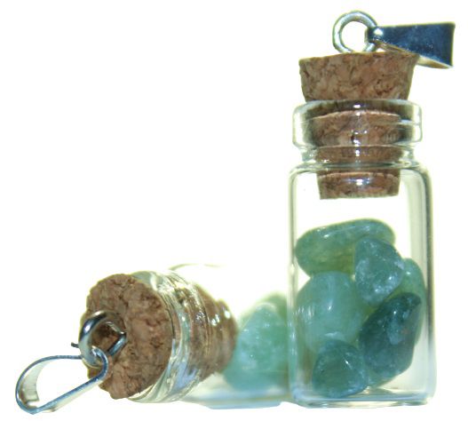 Amuleto de cura emocional e fisica para quem o utiliza. Presilha prateada com pedrinhas de Jade Verde rolado dentro da garrafinha de vidro.