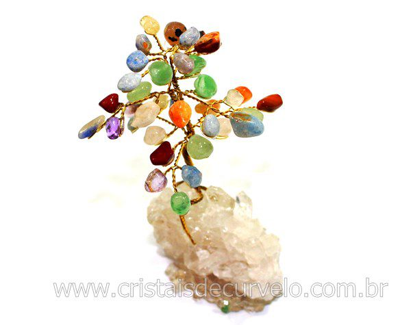 Arvore da Felicidade Pedras Mistas Rolada Natural de Garimpo com a Base Drusa de Cristal Arvore Feita Manualmente com Resina e Pedra Rolada natural Colada no Galho de Arame torcido Fixado em um Tronco também de Arame Torcido e Colado numa Base de Drusa de Cristal Peças Extremamente delicadas é um excelente presente