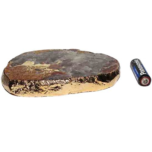 Bandeja de Calcedonia Mosaico natural com 13 centimetros com borda dourada ideal para petisqueira e uma otima decoração Parte superior polida