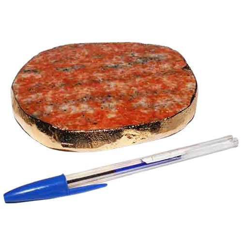 Bandeja de Calcita Laranja natural com 13 centimetros com borda dourada ideal para petisqueira e uma otima decoração Parte superior polida