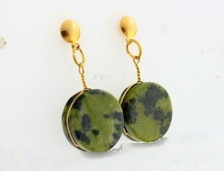 Brinco Pedra Jadeita, lapidação DISCO base Plana totalmente artesanal. A montagem é feita banho flash dourado