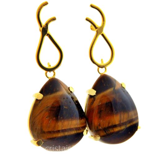 Brinco Garra Pedra Olho de Tigre, lapidação Gota totalmente artesanal. A montagem é feita banho flash dourado