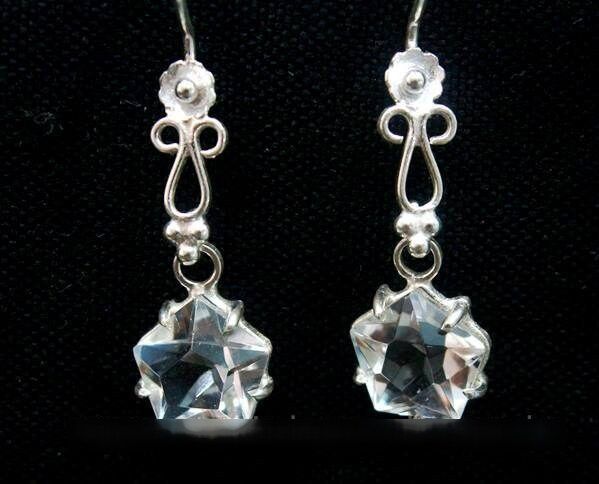 Brinco Pentagrama Pedra Cristal, a montagem PRATA 950 com Caixa para as pedras com gancho anzol para segurar o pentagrama pequenos e leves.