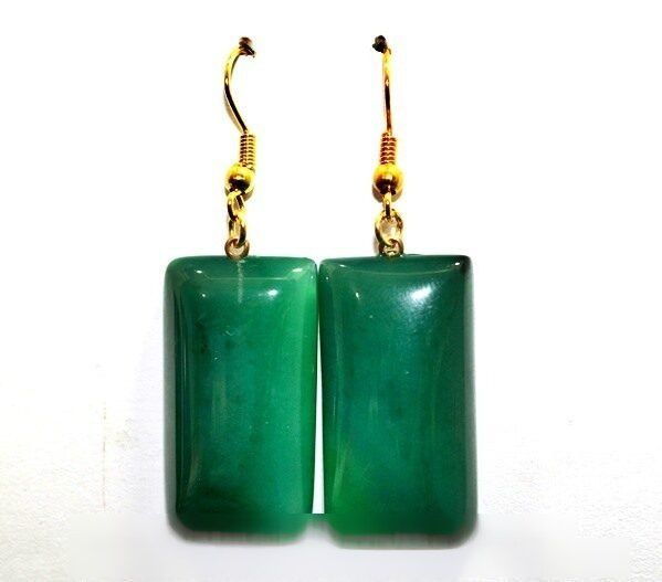 Brinco Retangulo Pedra Agata Verde, furado com pino e anzol com banho em dourado totalmente artesanal. A montagem é dourado. Pedra Natural de Garimpo.
