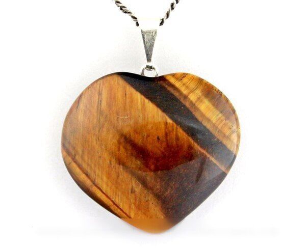 Colar Coração Olho De Tigre Pedra Natural Banho Prateado