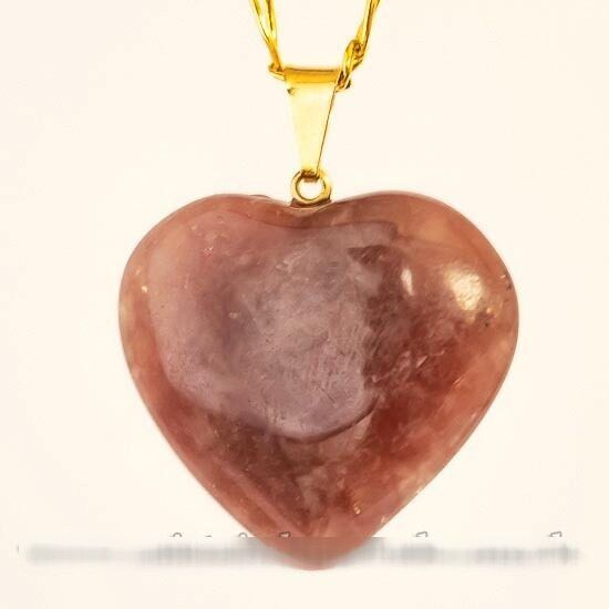Pingente Coração Pedra QUARTZO Morango Natural de garimpo Lapidação Coração, ideal para colar e pulseiras, ja vai montado. Banhado dourado ouro