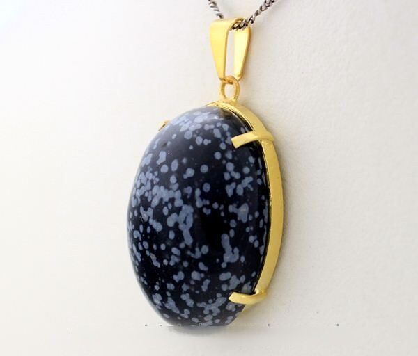 Pingente Cabochão Extra pedra Obsidiana Flocos de Neve castoação na garra dourado com perinha para passar o cordão Pedra Genuina com origem garimpo lapidação e montagem manual