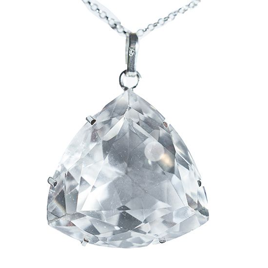 Colar Gigante Trillion Cristal Natural. Boa qualidade, pedra natural de garimpo, lapidação artesanal. Montado com Garra e Presilha na Prata 950, ideal para colares e pulseiras. Acompanha também colar de prata 925 no estilo corrente com elos ovais. Perfeito para se adequar a qualquer estilo por ser uma peça que denota requinte e sofisticação. O colar tem um peso relativamente leve, que não incomoda ao usar por longos períodos. O produto vem acompanhado de um porta-joia para manter seu colar sempre protegido.