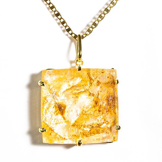 Pingente Hematoide Amarelo Grande Retangulo Garra Dourada, Pingente Retângulo Facetado Grande Especial Pedra Hematoide Amarelo Montagem na garra dourado com perinha para passar o cordão Pedra Genuina com origem garimpo lapidação e montagem manual