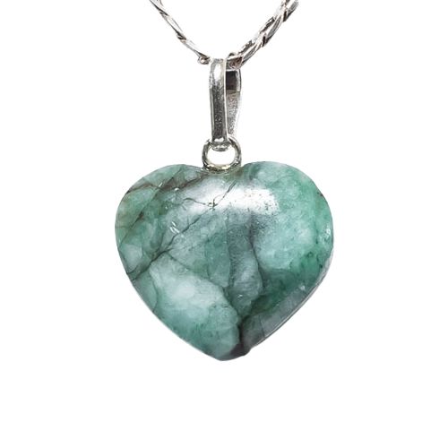 Pingente Mini Coração Pedra Esmeralda Natural com Montagem pino e perinha em Prata 950 PRATA DE LEI