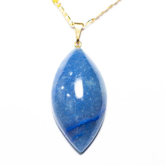 Pingente Navete Folha Quartzo Azul Lapidação manual, mineral de garimpo pedra natural Montagem Furado Pino + Perinha para colar