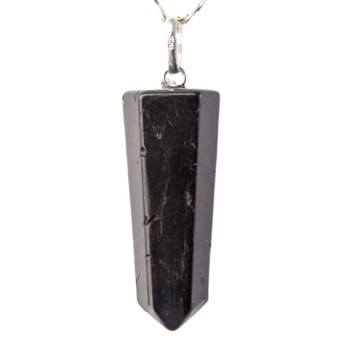 Pingente Pontinha Turmalina Preta Natural Boa qualidade, pedra natural de garimpo, lapidação artesanal montado Pino e Presilha na Prata 950, ideal para colar e pulseiras, já vai montado