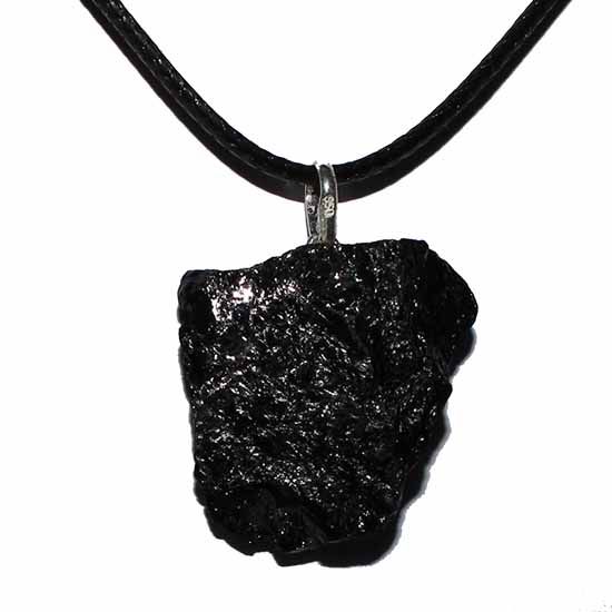 Exuberante pingente de turmalina preta bruta com elegante pino de prata 950. Beleza natural em joia sofisticada. Adquira já em seu acervo!