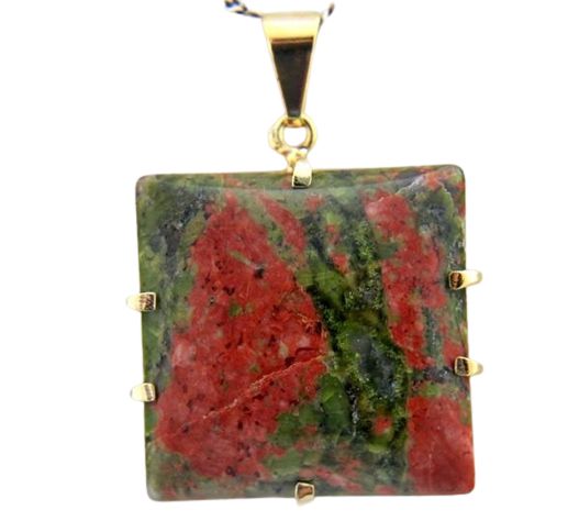 Pingente Unakita Lapidado Cabochão Quadrado castoação na garra dourado com perinha para passar o cordão Pedra Genuina com origem garimpo lapidação e montagem manual
