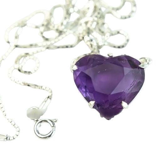 Gargantilha Gema Coração Facetado Pedra Ametista Prata 950 Luxo, Colar 50cm de Prata Modelo Veneziana Pedra Ametista Natural, Gemas facetado manualmente pedras legitimas montagem Cordão feito com fio de prata fechamento por fecho 'Boia' rápido e fácil de colocar e tirar, muito firme não tem risco de soltar e cair