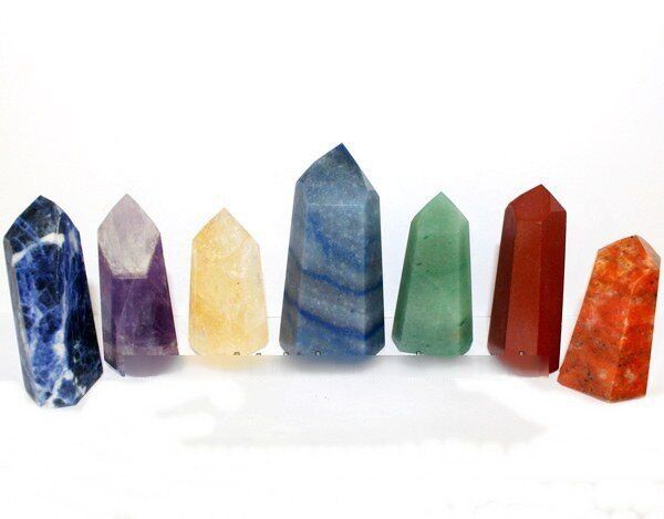 Kit 7 Chakras para Harmonização com Pontas + 1 Ponta Energizadora de Cristal ,lapidado nas Cores dos 7 Chakras com lapidação gerador sextavado ,pedras com bom brilho natural de garimpo ,ideal para energização de ambiente de trabalho ,casa ou quarto por canalizar a energia orgone Os tipos de pedras podem variar de acordo estoque mas nada que comprometa nas cores dos chakras