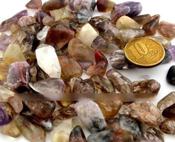Cacoxenita Super seven Media Rolado (Rarissima) Pedra Mineral Natural para esoterismo rocha de garimpo, conjunto com diversos minerais dentre cacoxeno, ametista, citrino ideal para esoterismo, tarô, sorte, mandala ou colecionador com linda cor e polimento... pacote com 100 gramas.
