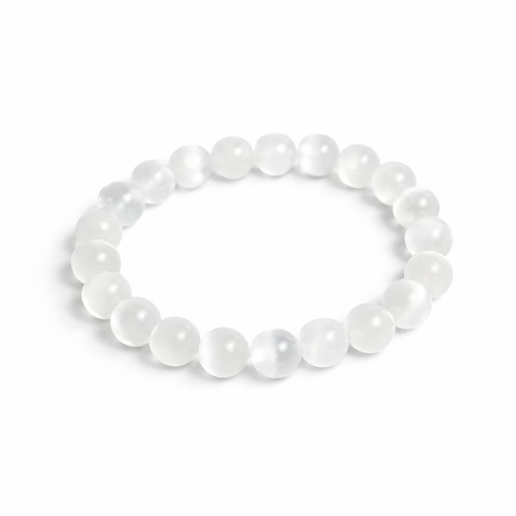 Pulseira Pedra Selenita 8mm Bolinha Natural Fio de Silicone